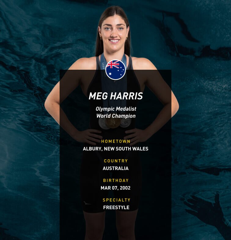 At the 2023 Fukuoka World Championships, Harris left with two golds and a silver in hand! Even more notably, Harris assisted in Team Australia crushing yet another World Record in in the LC 4x100m freestyle relay.